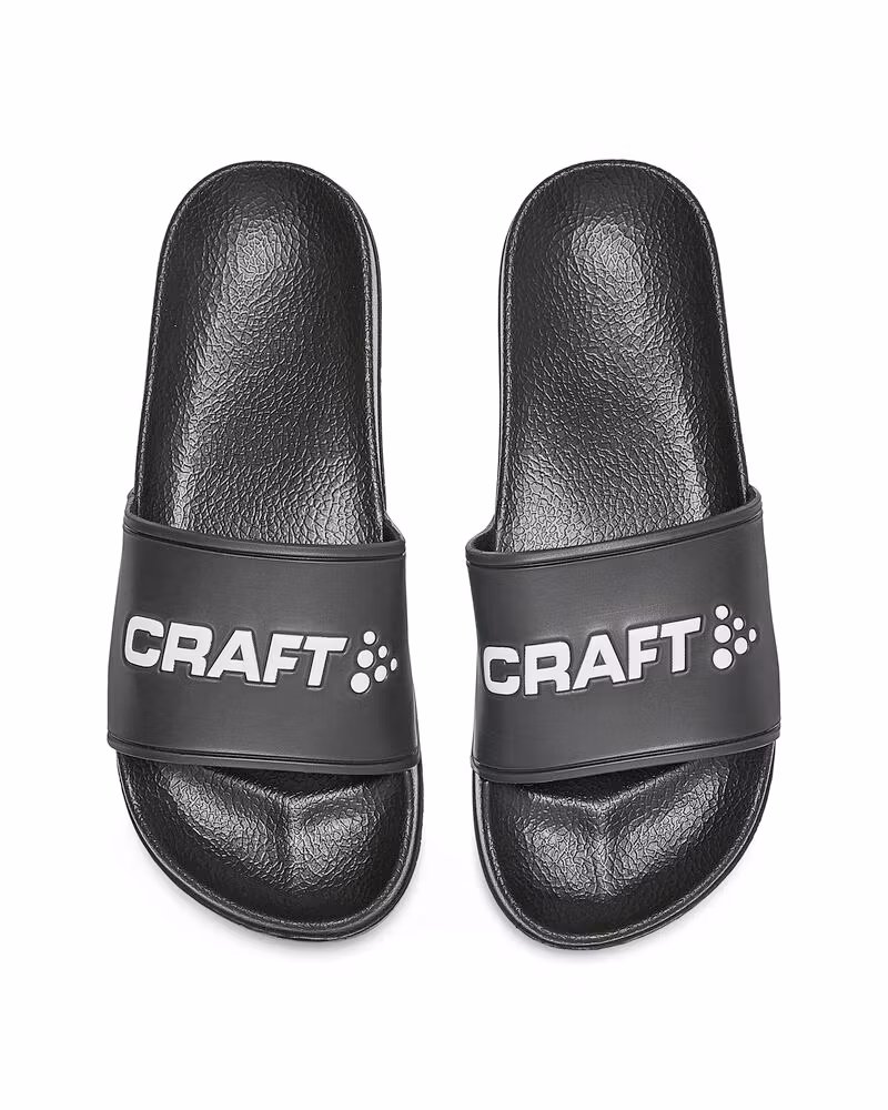 Lätta badtofflor med ergonomiskt formad fotbädd som ger bra stötdämpning i varje steg. Klassisk design med Craft-logo på ovandelen. Perfekt efter träning, match och tävling eller för vardagsbruk.• Ergonomiskt formad fotbädd• Mönstrad yttersula ger bra grepp