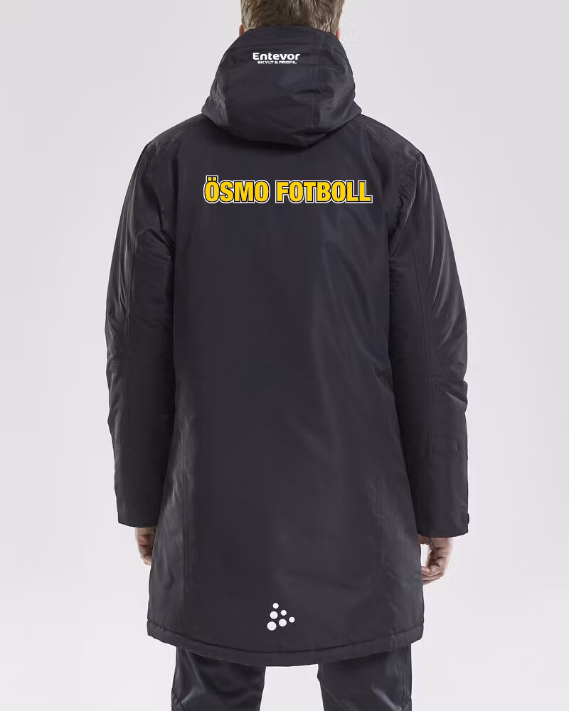 Vadderad lång jacka i slitstarkt yttertyg som passar perfekt vid uppvärmning i kyliga förhållanden eller som varm jacka för ledare och spelare på avbytarbänken. Utrustad med 2-vägs dragkedja, avtagbar huva, sex fickor och justerbara ärmslut. • Vind- och vattenavstötande material WP 3000/MVP 3000.