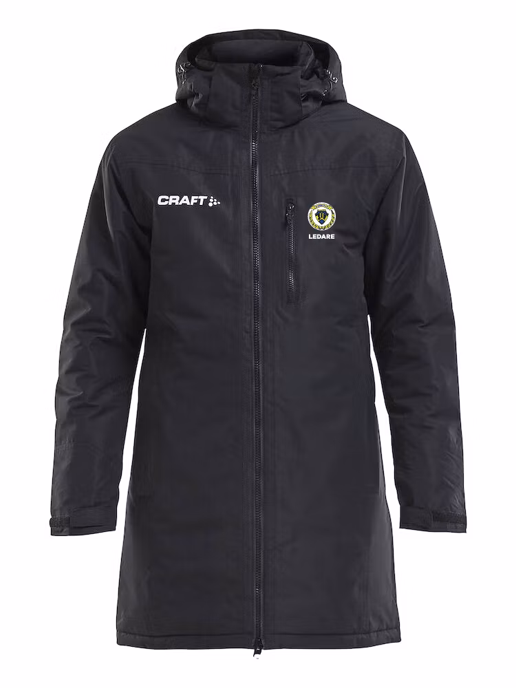 Vadderad lång jacka i slitstarkt yttertyg som passar perfekt vid uppvärmning i kyliga förhållanden eller som varm jacka för ledare och spelare på avbytarbänken. Utrustad med 2-vägs dragkedja, avtagbar huva, sex fickor och justerbara ärmslut.